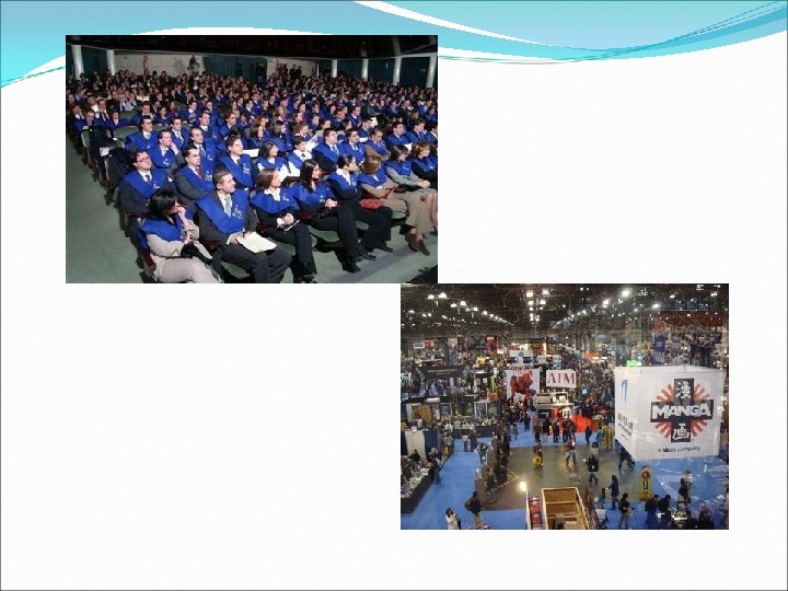Organización de una convención � El lugar en que se celebrará, que deberá ser lo suficientemente amplio y agradable como para acoger cómodamente a los invitados y que la reunión se desarrolle con éxito. Asimismo, deberá contar con instalación de megafonía y de proyección audiovisual así como de tarima o escenario desde donde expongan los ponentes, realicen mesas redondas, etc. � El alojamiento, que no debe estar muy alejado del lugar de reunión � El transporte de los convocados a la misma � La alimentación, para lo que habrá que prever el suministro de café y bebidas para las pausas de la convención, así como la organización de comidas y cenas para los asistentes durante el periodo de duración.