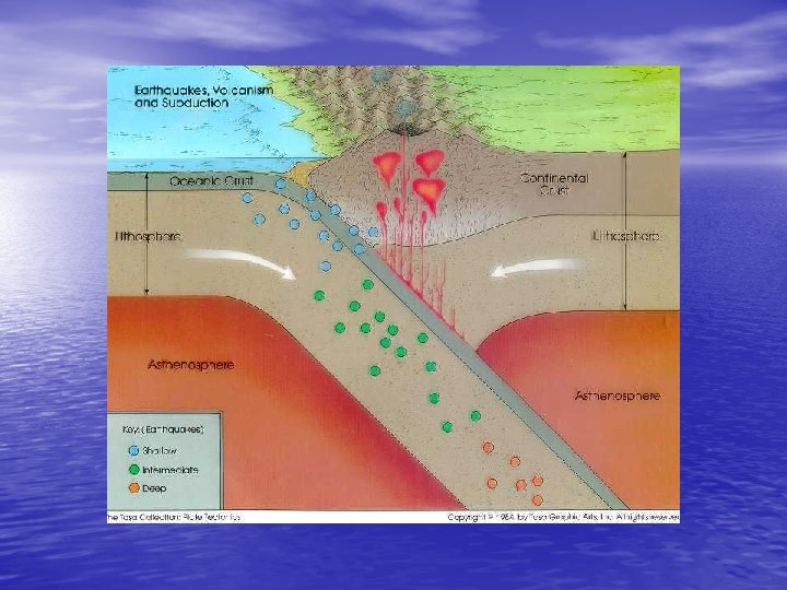 Earthquake depth indicates subduction zones
