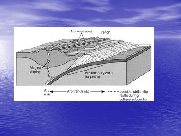 Subduction of oceanic lithosphere at an ocean trench