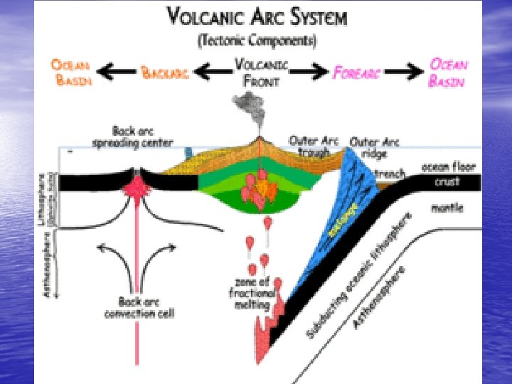 A forearc = forarc =arc-trench gap: a depression in the sea floor located between a subduction zone and an associated volcanic arc. It is typically filled with sediments from the adjacent landmass and the island arc in addition to trapped oceanic crustal material.