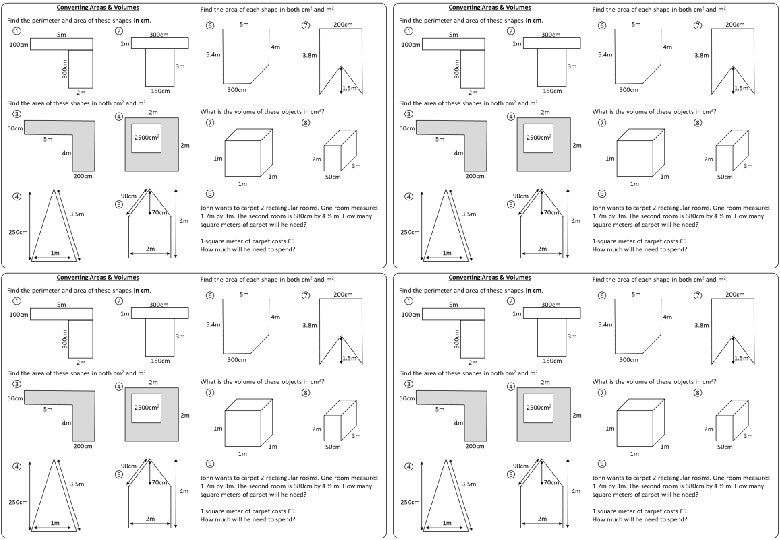Conversion – Area & Volume – Worksheet A The worksheet is in 3 sizes.