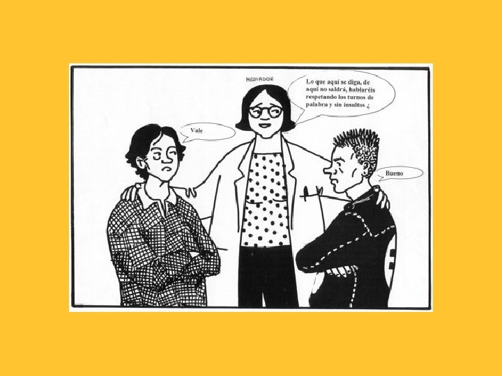 Mediación formal: procedimiento para gestionar conflictos Se basa en el diálogo a través de un encuentro voluntario entre las partes implicadas y la persona mediadora (ajena al conflicto e imparcial), que les ayuda a comunicarse. Objetivo: que las partes encuentren y decidan de común acuerdo la manera de solucionar el conflicto, con un acuerdo satisfactorio para ambas partes.