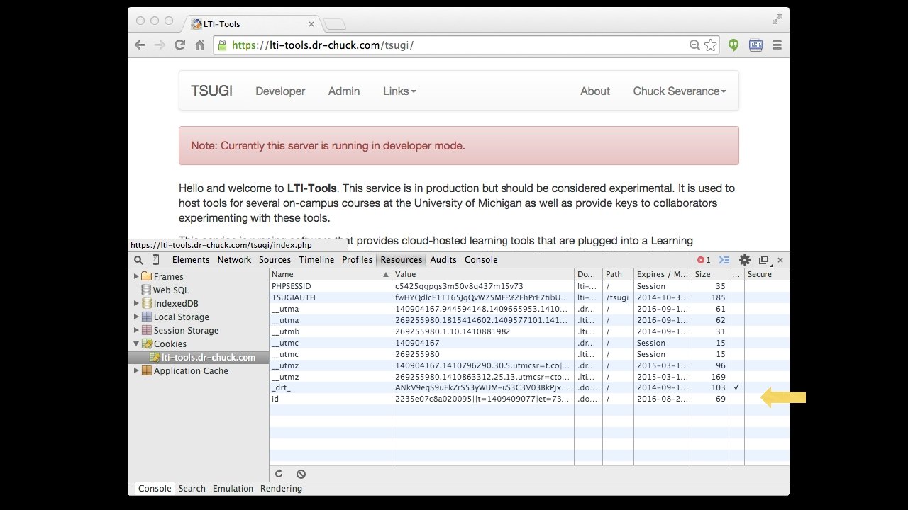 In The Server - Sessions • • • In most server applications, as soon as we meet a new browser we create a session We set a session cookie to be stored in the browser which indicates the session id in use The creation and destruction of sessions is handled by a web framework or some utility code that we just use to manage the sessions