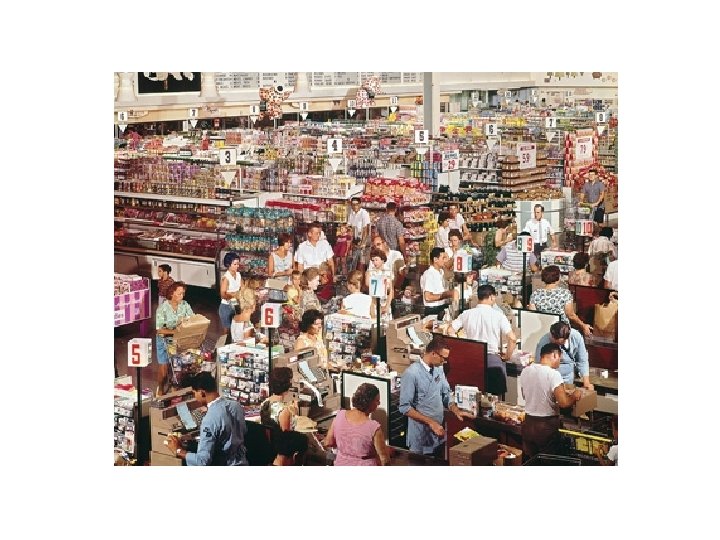 Supermarket Layout • These departments are usually located around the perimeter of the store – Produce – fresh fruits & vegetables – Meat – fresh meat, butcher – Dairy – milk, butter, eggs, processed cheeses – Bakery – bread products baked in-store – Deli – sliced meats, prepared foods, cheeses – Frozen foods - prepared meals, fruits & vegetables, ice cream – Wine & Liquor – Flowers – Pharmacy • These departments are usually in aisles in the center of the store – Soft drinks – Coke, Pepsi, bottled water, – Pet Foods – dog food, cat food, kitty litter, bird seed, pet supplies – Detergents and Household Cleaning Supplies – Baking Ingredients – flour, sugar, spices, cake & biscuit mixes – Canned Fruits & Vegetables – Canned Soups – Pasta and Sauces – Ethnic Items – Chinese, Mexican, • Checkout Area – impulse buys such as candy, gum, magazines