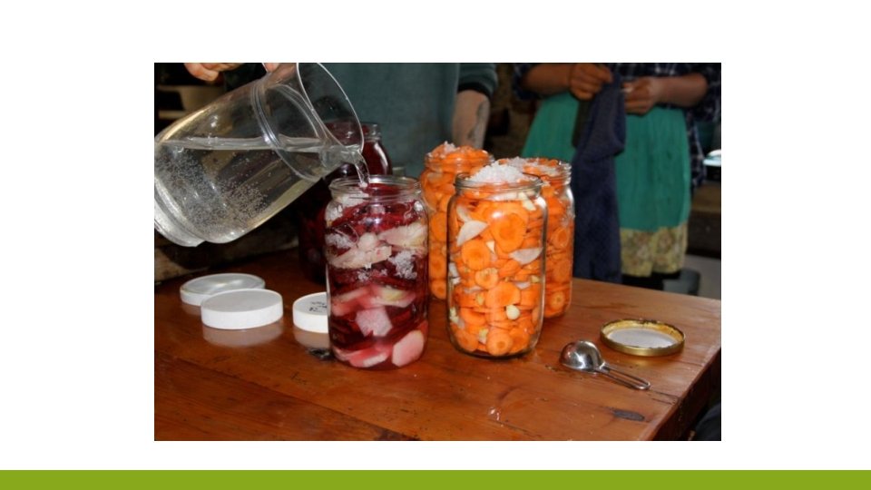 FERMENTATION Strategies ▪Fermented foods can be included in every meal ▪Need to be cared for on a daily – monthly – yearly basis, depending on ferment ▪Make in bulk and share and trade ▪Use non metal containers for fermenting. Including the lids for jars- they’ll corrode ▪Glass, ceramic and wood containers can all be used ▪Food grade plastic can be used, but may leave traces in food
