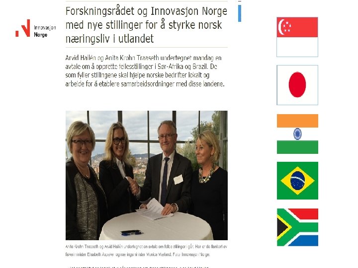 Roadmap prioritized countries § § § § Brazil Canada India Japan China Russia South Africa USA Kristin Danielsen Internasjonal direktør. Bjørn Tore Kjellemo Direktør. Utvikling og samarbeid