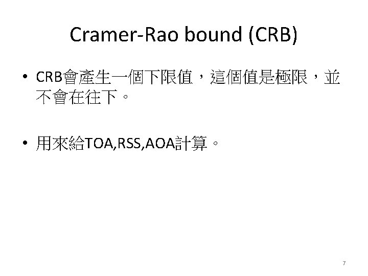 INTRODUCTION • Using the models, we show to calculate a Cramer-Rao bound (CRB) on the location estimation precision possible for a given set of measurements. 4