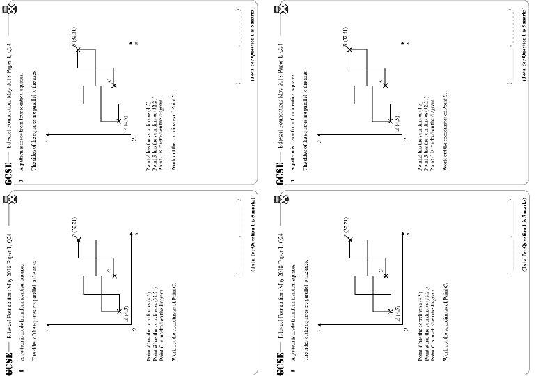 Coordinates & Geometry – Foundation – GCSE Questions These questions are the same format as previous GCSE exams. COPY means they use the exact same numbers as the original GCSE question. Otherwise, they are clone questions using different numbers. The worksheets are provided in a variety of sizes.