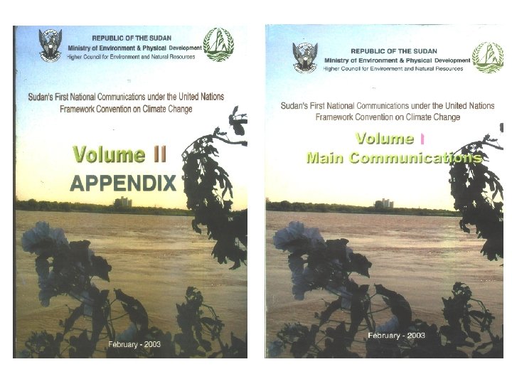 Sudan and Climate Change l l l Signed the UNFCCC in Rio 1992 and ratified in November 1993 Active member, attending all sessions and participation in many UNFCCC activities First National Communications prepared and Submitted in June 2003 Active member of the IPCC, a number of experts selected as lead authors in different publications October 2004 the instrument to ratify the Kyoto Protocol has been signed by the president