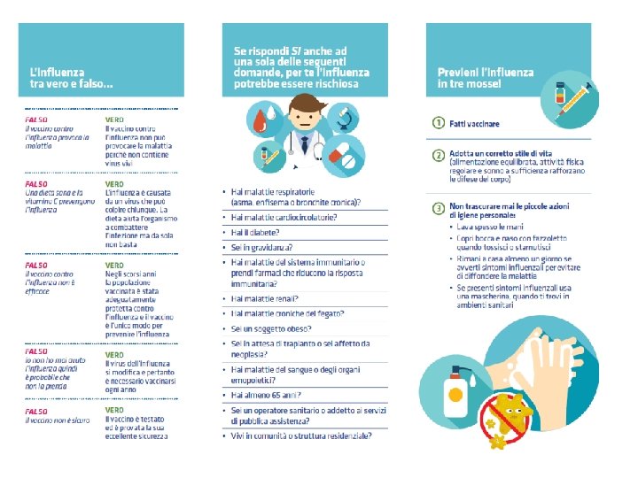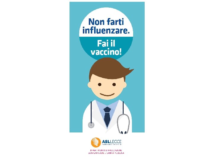 Campagna antinfluenzale 2015 -2016 q Obiettivi: Ø Riduzione del rischio individuale di malattia, ospedalizzazione e morte Ø Riduzione dei costi sociali connessi con morbosità e mortalità q Prevenzione: Ø Misure igieniche (lavaggio delle mani, ; buona igiene respiratoria; isolamento volontario a casa dei sintomatici; uso di mascherine dei soggetti sintomatici in ambienti sanitari) Ø Vaccinazione