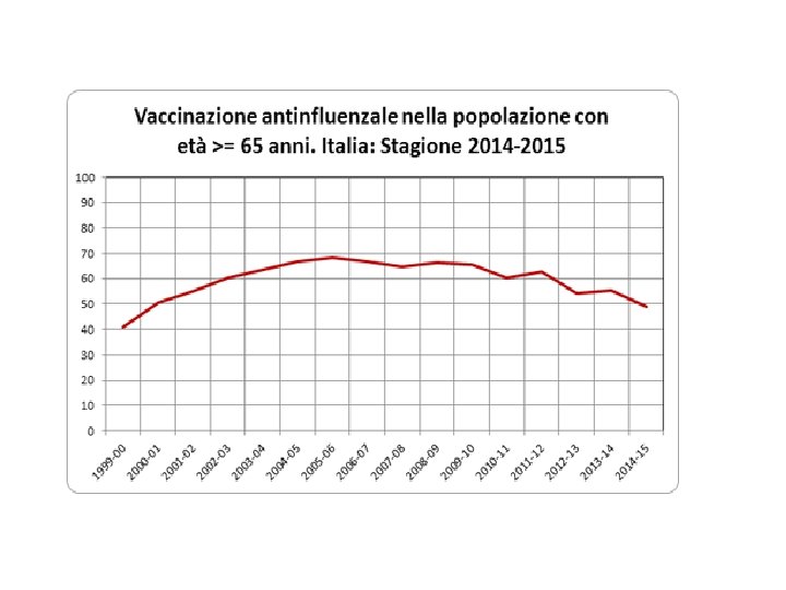Obiettivi di copertura per i soggetti di età ≥ 65 anni (per tutti i gruppi target) • Il 75% come obiettivo minimo perseguibile • Il 95% come obiettivo ottimale Circolare del Ministero della Salute 2015