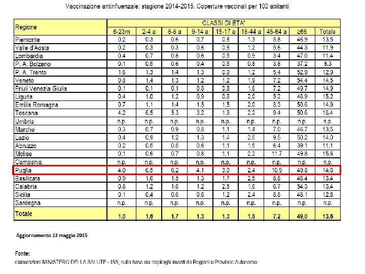 COPERTURA VACCINALE ANTINFLUENZALE IN PUGLIA CAMPAGNA 2014 2015