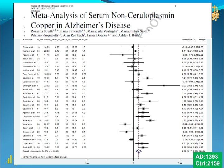 ATP 7 B SNPs modulate Non-Cp copper in AD patients AD: 399 Ctrl: 303 [Non-Cp copper] in AD and rs 732774 AD carriers of GG genotype have higher levels of Non-Cp copper than carriers of AA+AG genotypes (p value = 0. 005) (Squitti et al. , Neuromolecular Med. 2013)