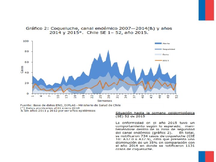 TOS FERINA O COQUELUCHE ( CI E 10: A 37. 0 — A 37. 9) SITUACIÓN EPIDEMIOLÓGICA, ENERO—DICIEMBRE 2015 • Antecedentes generales La tos ferina o coqueluche, es una enfermedad respiratoria aguda causada por la bacteria Bordetella pertussis; cuyo único reservorio es el ser humano. También se han identificado otras especies de Bordetelas que pueden causar un cuadro clínico similar a coqueluche. Clásicamente, se identifican 3 etapas en la enfermedad: catarral, paroxística y convalecencia, sin embargo, la presentación de la enfermedad varía según factores propios del paciente tales como la edad, historia previa de exposición, antecedentes mórbidos, vacunación, entre otros. Los niños que no han recibido la serie primaria de vacunación contra coqueluche, presentan mayor riesgo de enfermar y presentar complicaciones propias de la enfermedad e incluso fallecer.