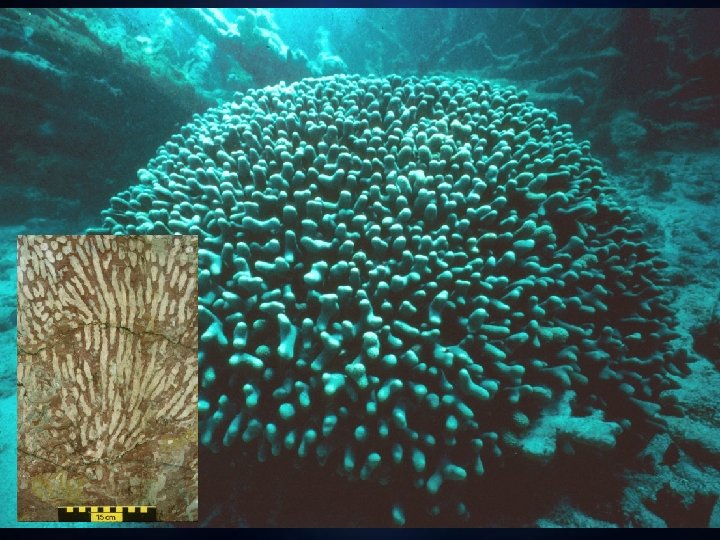 Ecologic reef accumulation Fossil reef with in place structural elements – Acropora palmata