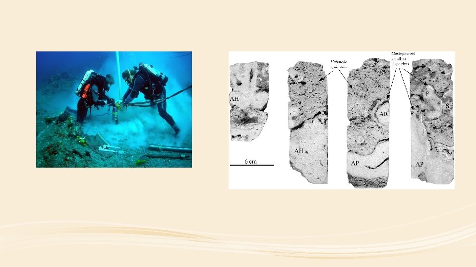 Core Drilling to Date Corals Reefs • Deep drilling of coral reefs provides cores of material which can be used to identify corals and to estimate the rate of growth of the reef. • As corals grow, they produce ‘bands’ which are similar to the annual growth rings of a tree. • Interpretation of the bands provides evidence for changes in the growth rate of corals, in response to changes in environmental conditions, such as temperature or nutrient availability.