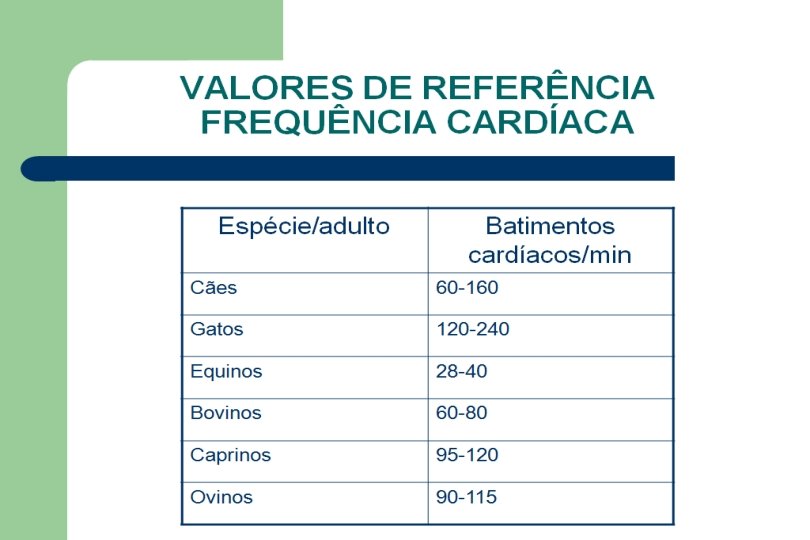 Ritmo de Galope • É a sequência de três sons consistindo do primeiro e segundo sons cardíacos (S 1 e S 2) e um som extra que geralmente é a intensificação do terceiro ou quarto sons cardíacos (S 3 e S 4), ou ambos. O ritmo de galope mais comum em cães com insuficiência mitral, cardiomiopatia dilatada, defeito do septo ou ducto arterioso persistente (PDA). • Em gatos, este som está mais comumente associado com doença congestiva, cardiomiopatia hipertrófica, hipertireoidismo ou anemia severa.