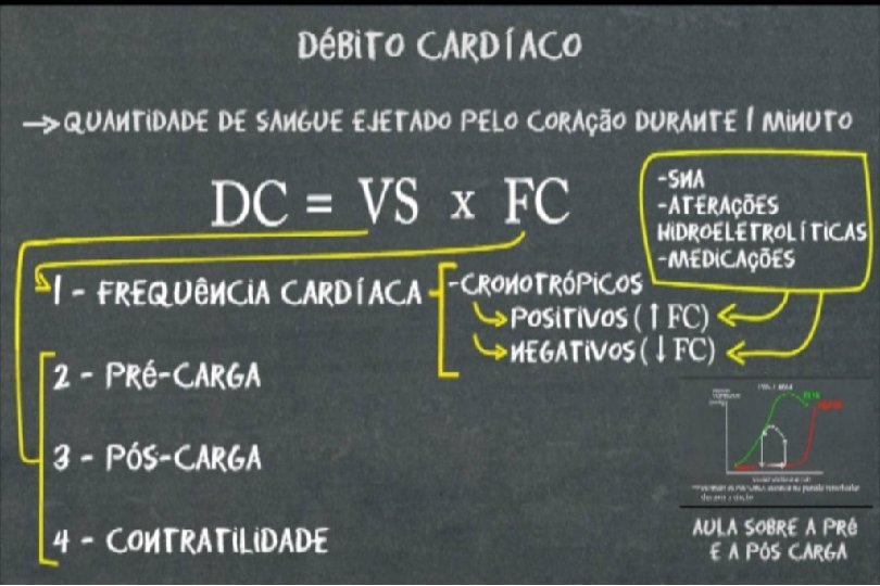 �Débito Cardíaco: � DC= VS X FC (volume sistólico x frequência cardíaca) VS= Pré-carga x contratilidade Pós-carga