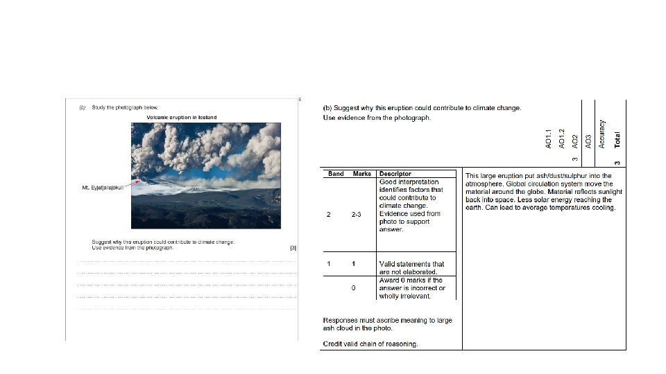 • Explain how one piece of evidence, other than rising temperatures, suggests that climate is changing. [4] • Explain is the command word, this means you have to demonstrate your understanding, AO 1. 2 • For explain you need to use connectives to develop your reason… • This means. . The result is…therefore… e. t. c. • One piece of evidence, rising temperatures and climate is changing are the focus/geography words. • You need to use evidence other than rising temperatures and only 1 other. • You must link how this evidence shows climate change.