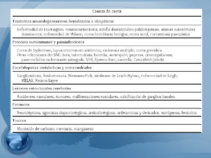 • Corea primario: idiopático, genético • Corea secundario: infecciosas, inmunes, otra. 1 - ARCH NEUROL/vol 60, oct 2003 "The Basal ganglia and Involuntary Miovements"
