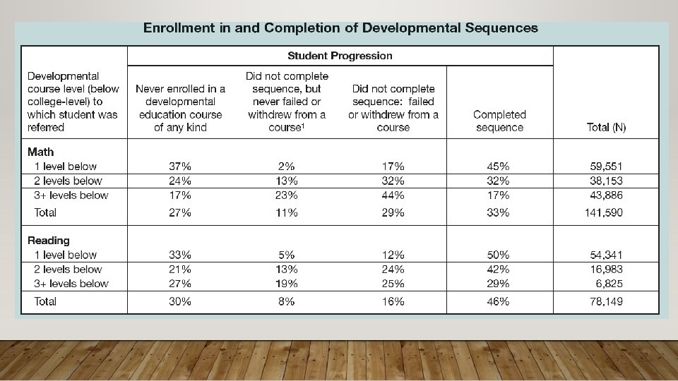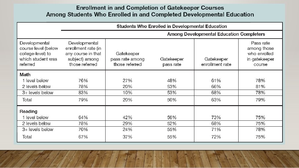 BEST PRACTICES OF A CO-REQ • Attempt for low student-teacher ratio in the co-req course • Same instructor for both co-req section and college-course section • Avoid the heterogenous model. Compare to homogenous model, heterogenous had • Lower pass rates in subsequent college-level courses • A 3 percent decrease in persistence • A decrease of 0. 5 courses completed • A decrease of 1. 5 college credits earned Source: Sung-Woo Cho, Community College Research Center