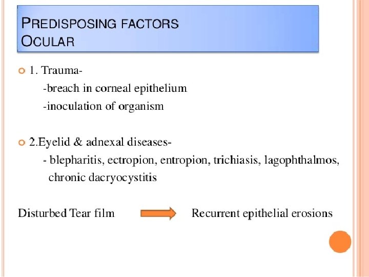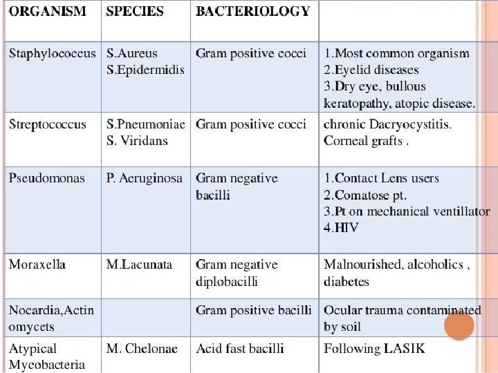 BACTERIAL CORNEAL ULCER / PURULENT KERATITIS Etiology Eoxgenous – pseudomonas, staph. Aureus and albus, pneumococcus, N. gonorrhoea, E. coli N. gonorrhoea and C. diphtheriae invade normal epithelium