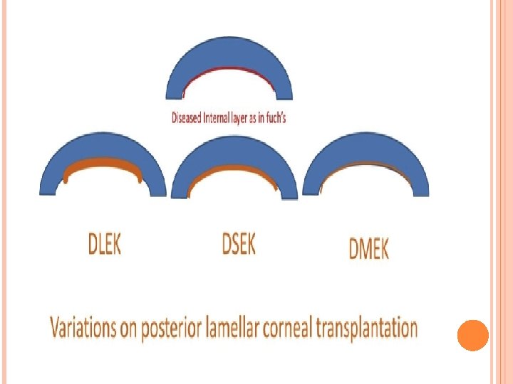 (B) PENETRATING KERATOPLASTY. (C) ANTERIOR LAMELLAR KERATOPLASTY . (D) DEEP LAMELLAR ENDOTHELIAL KERATOPLASTY. (E) DESCEMET'S STRIPPING AUTOMATED ENDOTHELIAL KERATOPLASTY. (F) DESCEMET'S MEMBRANE . ENDOTHELIAL KERATOPLASTY