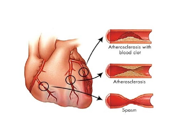 Aetiology Atherosclerosis (>90%) Embolisation Coronary spasm Vasculitis Ostial stenosis Severe LVH Congenital anomalies of the coronary artereis (e. g anomalous origin of LAD artery from pulmonary artery)