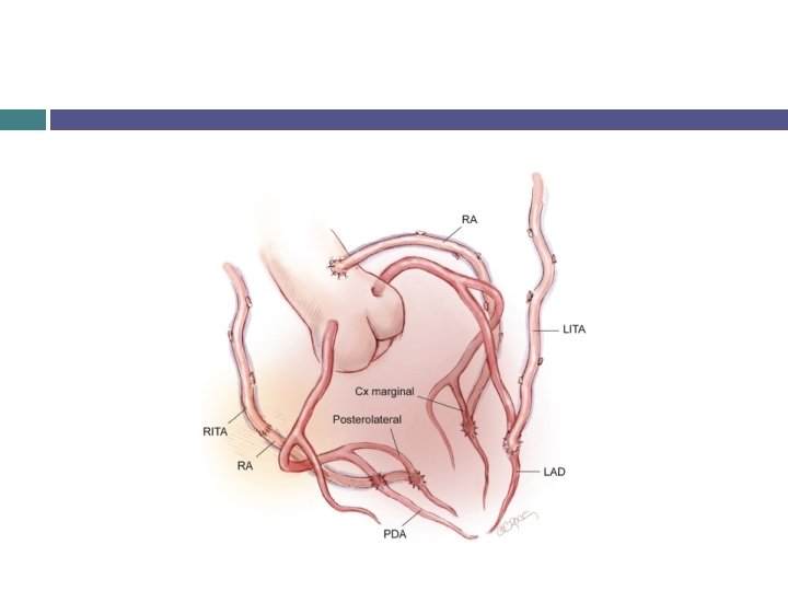 Adult Cardiac Surgery: CABG Techniques Median sternotomy Cardiopulmonary bypass Cardioplegic arrest Mammary artery, reversed saphenous vein, radial artery.