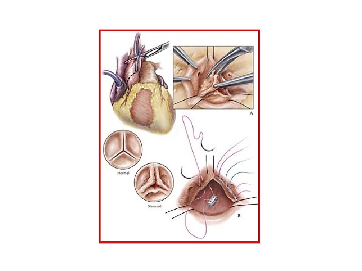 Adult Cardiac Surgery : Valvular Heart Disease Mitral Regurgitation Myxomatous degeneration, ischemic, rheumatic valve disease, endocarditis, chordal rupture, dilated cardiomyopathy, etc. Surgical indications Symptomatic with 3+ to 4+ MR, asymptomatic with 3+ to 4+ MR and a decrease in EF, LV dilatation, new onset of atrial fibrillation Mitral Stenosis Rheumatic heart disease, annular/leaflet calcification, congenital deformities, endocarditis, etc. Surgical indications MVA ≤ 1. 0 cm 2
