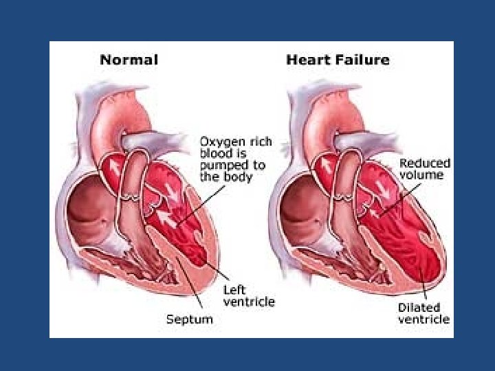 Heart Failure • Complex syndrome resulting from cardiac disorders that impair the ventricles’ ability to fill and effectively pump blood • Inability of the heart to pump sufficient blood to meet the metabolic demands of the body. • 5. 7 million people in the US have heart disease. • HF is increasing in incidence and prevalence. • Primarily a disease of older adults. • HF is associated with high morbidity/mortality rates