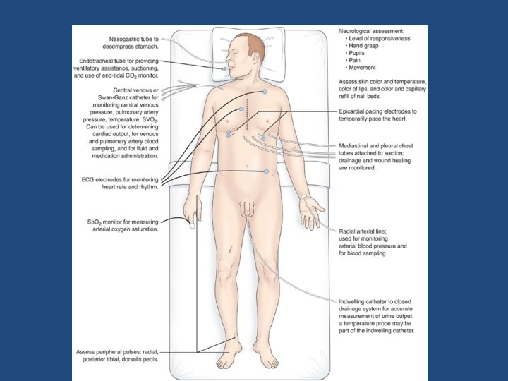Percutaneous Coronary Intervention Post procedure care: • Assess vital signs • Bedrest/ flat in bed • Affected leg straight • Pressure dressing applied • Monitor for bleeding/hematoma • Resume self-care activities/ambulation few hours after procedure