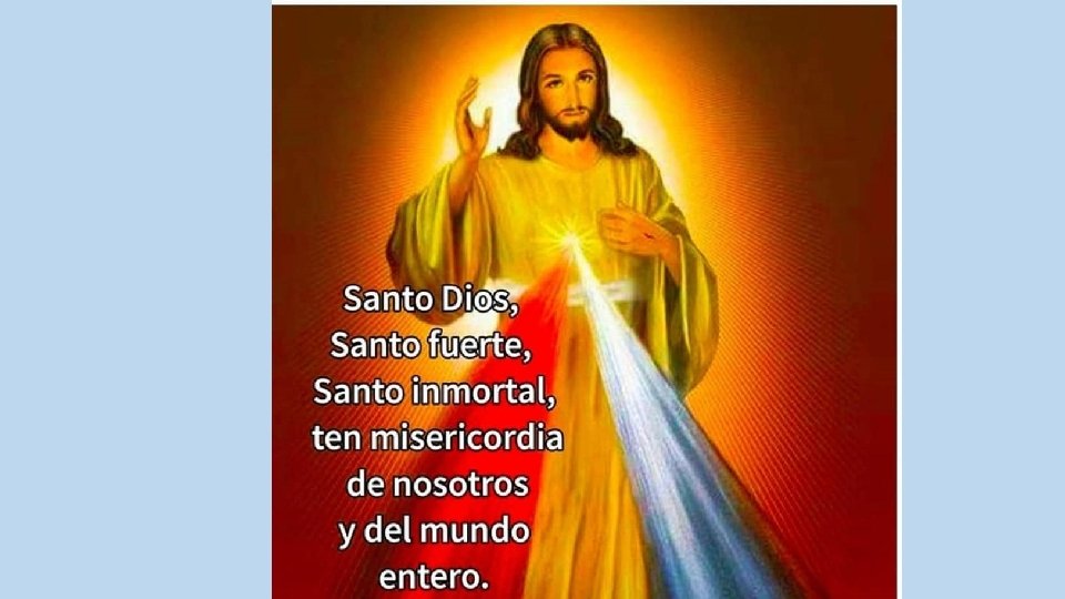 Padre eterno, yo te ofrezco el Cuerpo, la Sangre, el Alma y la Divinidad de tu Amadísimo Hijo, Nuestro Señor Jesucristo, R. - Para el perdón de nuestros pecados y los del mundo entero Por Su dolorosa Pasión R. Ten misericordia de nosotros y del mundo entero