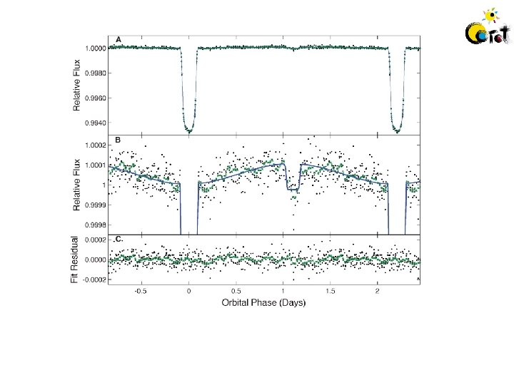 Co. Ro. T-Exo-3 b: P: 4. 2568 d r: 1. 01 RJ (0. 07) m: 21. 66 MJ (1. 0) r: 26. 4 g cm-3 (5. 6) log g: 4. 72 (0. 07) The star: F 3 V V = 13. 3 mag Teff = 6740 K V sin i = 17 km s-1 d = 680 pc 1. 37± 0. 09 Mo (lc+models) R* = 1. 56± 0. 09 RO (lc+models) Age = 1. 6 – 2. 8 Gyr Log g = 4. 24± 0. 07 (models+spectra) [M/H] = -0. 02± 0. 06 Deleuil et al, 2008, A&A, 491, 889