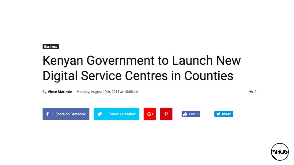 üICTs are being used to enhance governance and development in Kenya (and the EA region). However, what is the state of the feedback loop between the government and its citizens? What is the current impact of the feedback loop as it exists?