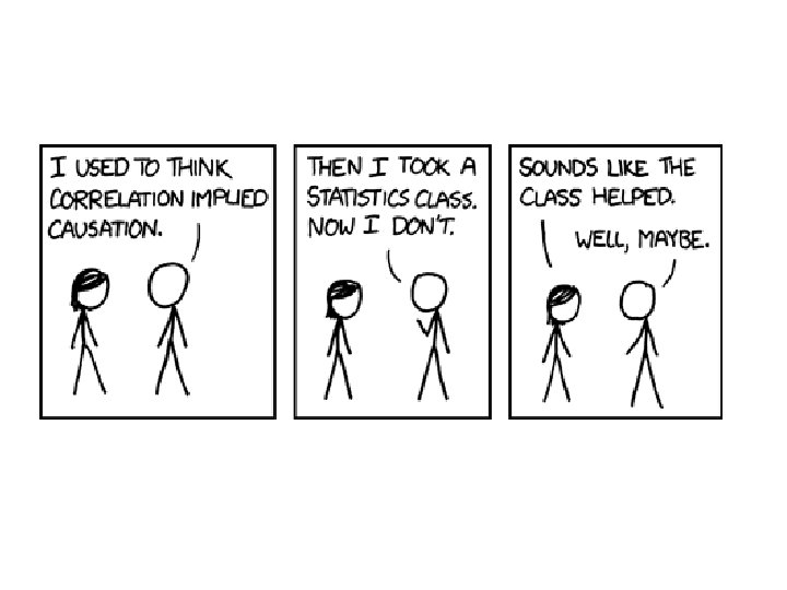 Other fun facts about correlations 1. (one more time…)DOES NOT PROOVE CAUSEEFFECT RELATIONSHIPS! 2. The value of r can be affected by the range of scores in the data 3. Extreme data points (outliers) can dramatically affect a correlation value 4. The r value DOES NOT correspond to how accurate predictions are (r=. 50, does NOT mean 50% accuracy of prediction)