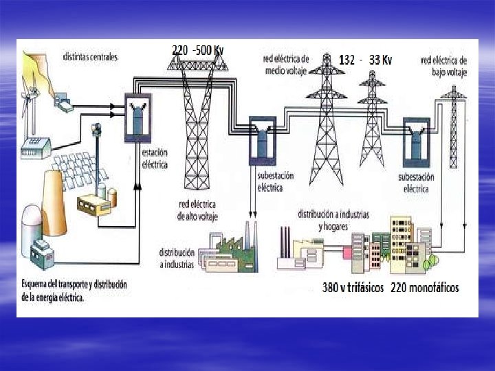 Valores eficaces de la tensión y la corriente Valor eficaz o valor rms, es el valor efectivo de la corriente alterna comparable al efecto de la corriente continua sobre la misma resistencia ohmica Vrms = Irms = ʃ v 2 dt ; v = V sen(ωt) V 2 I 2 = 0, 707 V = 0, 707 I ; i = I sen(ωt)