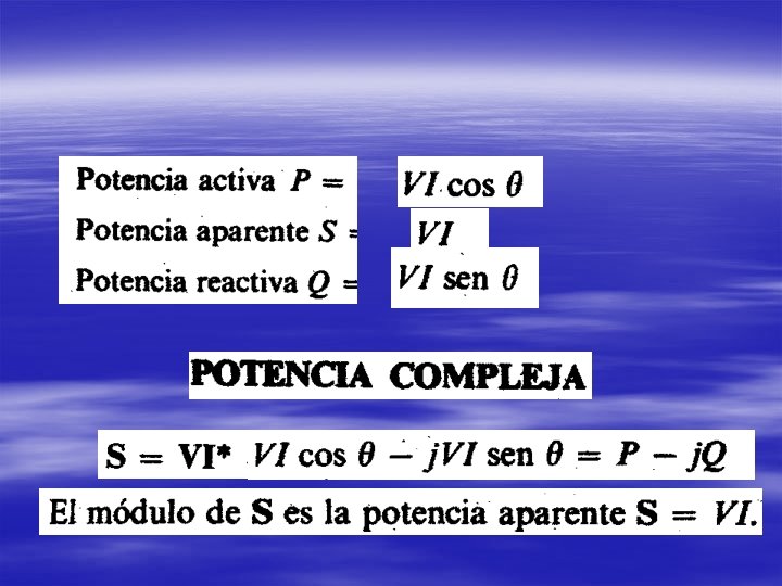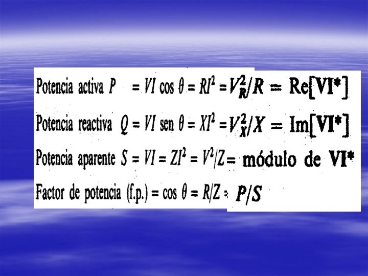 V * I cos θ Potencia activa V * I sen θ Potencia reactiva V * I Potencia aparente