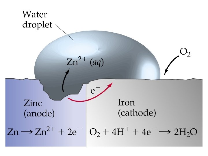 • Oxidation occurs at the site with the greatest concentration of O 2. Preventing Corrosion of Iron • Corrosion can be prevented by coating the iron with paint or another metal. • Galvanized iron is coated with a thin layer of zinc.