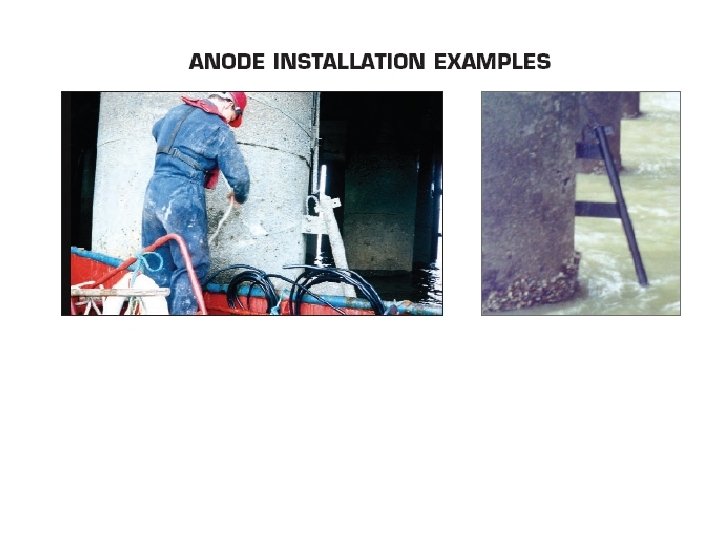 Cathodic protection Current i pipe – cathode anode Structures that are commonly protected by cathodic protection are the exterior surfaces of: ØPipelines ØShips’ hulls ØStorage tank bases ØJetties and harbour structures ØSteel sheet, tubular and foundation pilings ØOffshore platforms, floating and sub sea structures Cathodic protection is also used to protect the internal surfaces of: ØLarge diameter pipelines ØShip’s tanks (product and ballast) ØStorage tanks (oil and water) ØWater-circulating systems However, since an internal anode will seldom spread the protection for a distance of more than two to five pipediameters, the method is not usually practical, or suitable, for the protection of small-bore pipework.