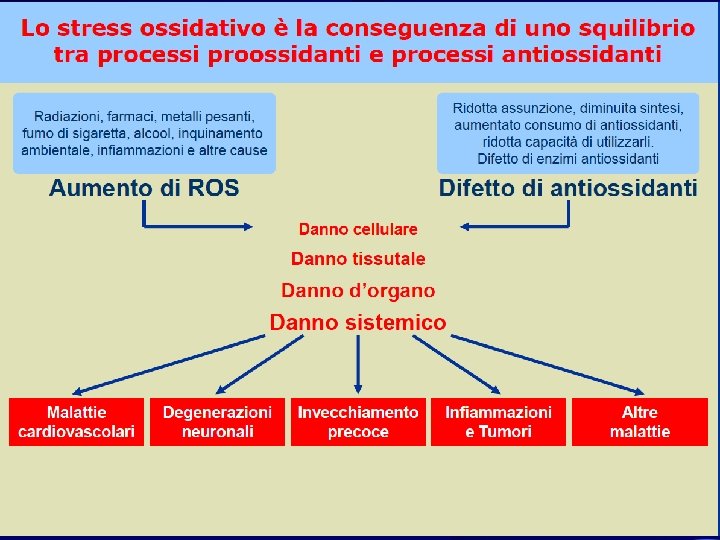 Lo stato ossidativo è l’espressione di un bilancio tra proossidanti (radicali liberi e metaboliti attivi dell’ossigeno) e sistemi antiossidanti