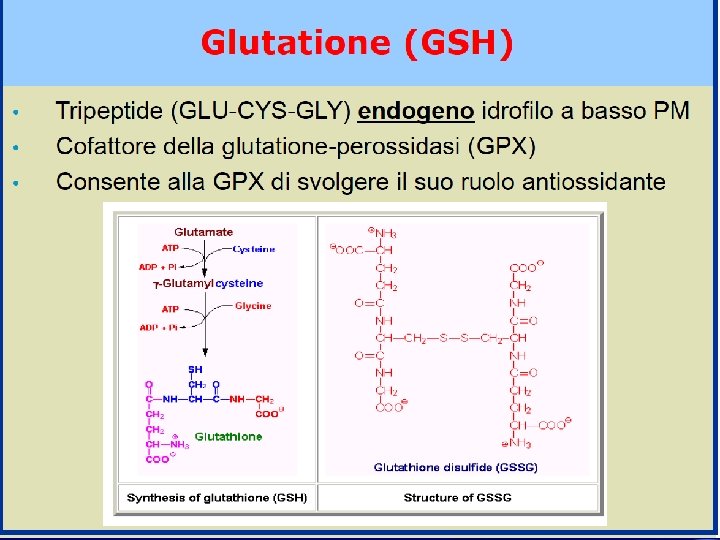 Il glutatione o GSH è un tripeptide con proprietà antiossidanti costituito da cisteina e glicina, legate da un normale legame peptidico, e glutammato che invece è legato alla cisteina con un legame peptidico atipico tra il gruppo carbossilico della catena laterale del glutammato ed il gruppo amminico della cisteina.