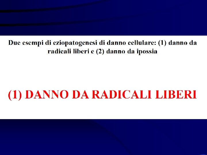 Il danno dei radicali liberi L’attacco alla membrana cellulare porta a patologie degenerative: arteriosclerosi, artrosi, patologie infiammatorie croniche. L’attacco al DNA può favorire la nascita di tumori maligni. § RADICALI LIBERI § Danno ai mitocondri § Danno al DNA § Danno alla membrana cellulare