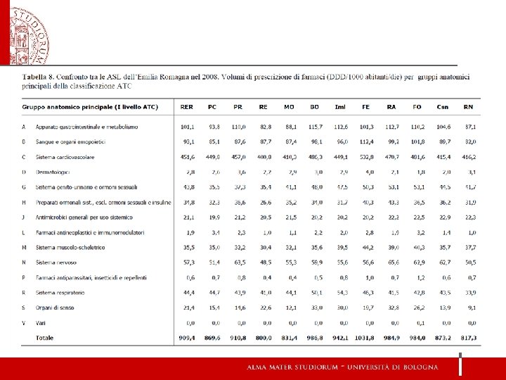 CORSO DI ALTA FORMAZIONE "e-Health: Reti e Tecnologie per la Sanità" Venerdì 23 aprile 2010 ore 14, 00 -18, 00 Policlinico S. Orsola-Malpighi, Polo Didattico Murri - Aula Murri Il monitoraggio del consumo di farmaci: il database della Regione Emilia-Romagna Elisabetta Poluzzi Dipartimento di Farmacologia