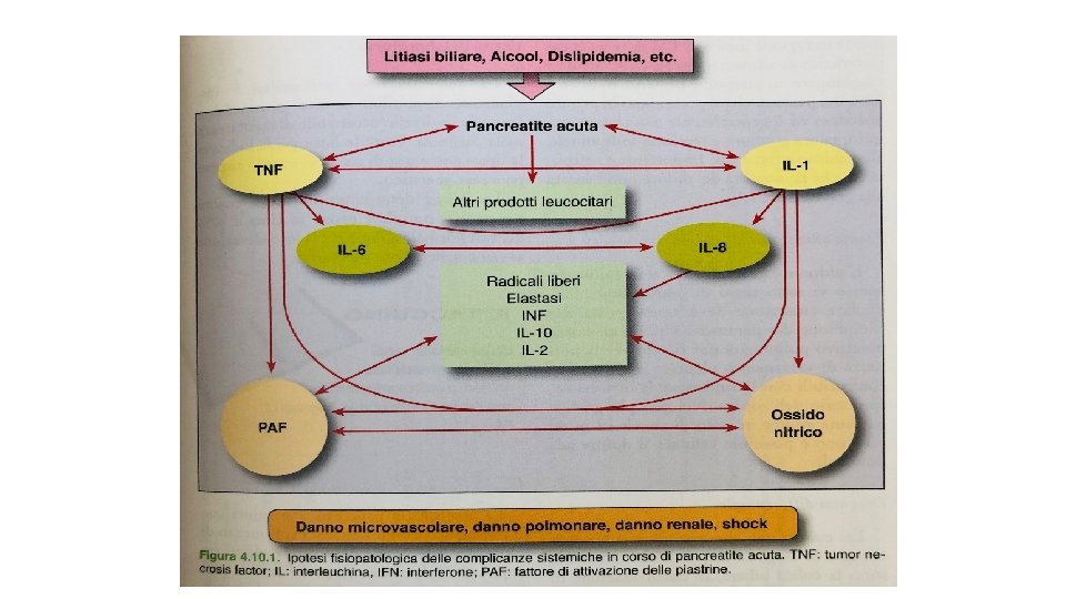 Necrotizing Pancreatitis No pancreatitis or Edematous Pancreatitis FISIOPATOLOGIA Trypsinogen Trypsin Systemic circulation PSTI + Trypsin Alfa 2 -M Alfa 1 -AT Alfa 2 + Trypsin Alfa 1 -AT + Trypsin Procolipase Proelastase Chymotrypsinogen Prophospholipase A 2 Xanthynedehydrogenase Mesotrypsin Enzyme Y Prokallycrein C 3 C 5 Plasminogen XII Factor RES Liver Spleen Bone marrow Nodes Clearance Kininogens Colipase Elastase Chymotrypsin Phospholipase A 2 Xanthynedehydrogenase Kallycrein C 3 a C 5 a Plasminogen XIIa Factor Kinins