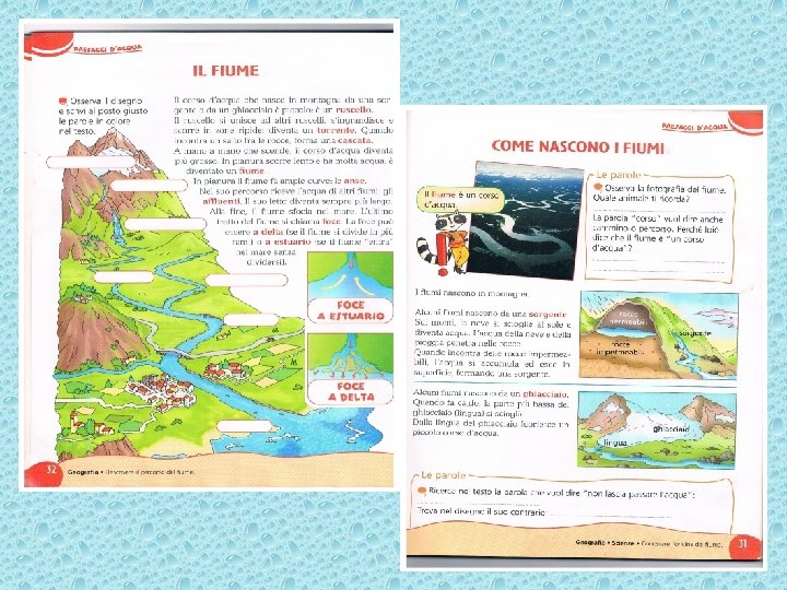 • L’alunno conosce e descrive gli elementi principali dei paesaggi d’acqua utilizzando una terminologia appropriata • L’alunno è consapevole dell’importanza di salvaguardare il paesaggio naturale e assume un atteggiamento responsabile verso l’ambiente