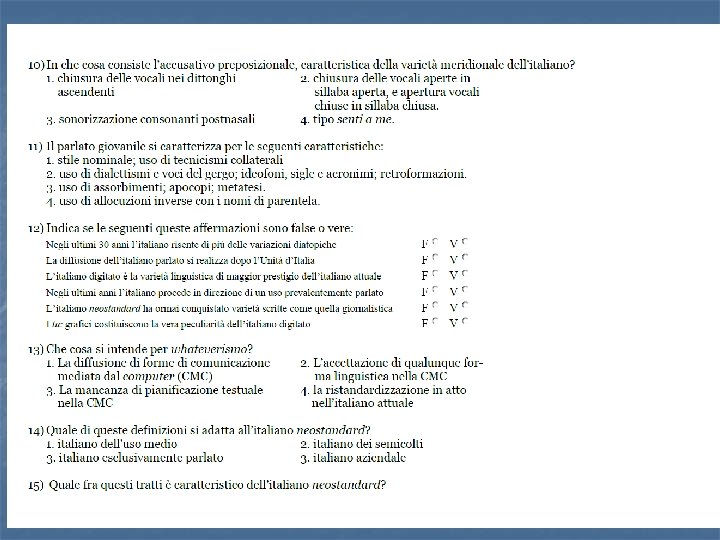 . . . si passa dall’ Italiano (standard)… …agli “Italiani” (le diverse varietà della lingua italiana)
