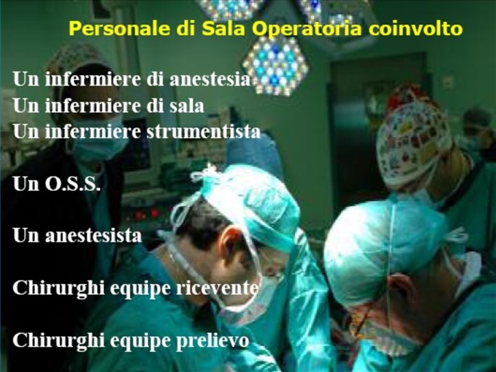 Fine osservazione SALA OPERATORIA cornee cuore PRELIEVO pancreas reni fegato