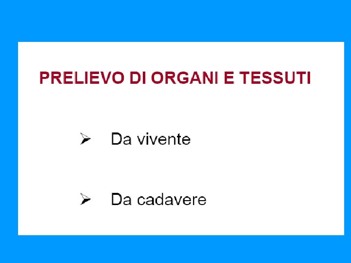 • TRAPIANTO : di organi • INNESTO: di tessuti