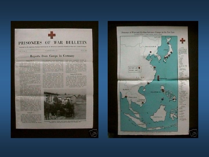 CICR AGENZIA CENTRALE RICERCHE sul posto -raccogliere informazioni relative a: - prigionieri - internati - profughi a Ginevra - informare le famiglie sulla sorte dei propri congiunti - cercare materialmente i dispersi - riunire le famiglie 50 milioni di schede raccolte in un archivio informatico unico